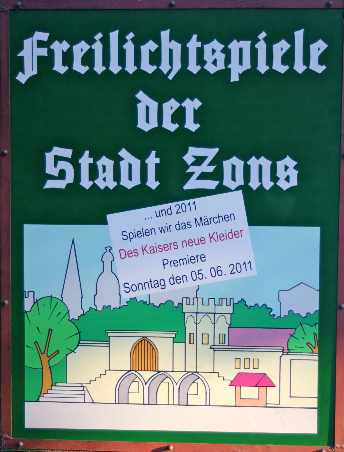 Mehr als 60 Jahre gibt es jetzt bereits Märchenspiele in Zons unter freiem Himmel. Die Freilichtbühne, auf der in jedem Jahr ein anderes Märchen aufgeführt wird, wurde 1935 erbaut. Nur unterbrochen durch den 2. Weltkrieg, wurden die Aufführungen 1953 wieder ins Leben zurückgerufen. Früher wurden dort historische Begebenheiten nachgespielt, später kamen Märchenaufführungen dazu. Ab 1962 wurden nur noch Mächen aufgeführt. Der Besuch in der Freilichtbühne ist für Kinder, aber auch für Erwachsene ein Erlebnis. Vor dem Hintergrund der Schlosskulisse und der historischen Kulisse von Zons erlebt man jedes Jahr eine neue Märchenwelt.
